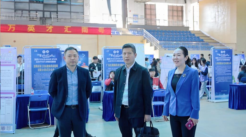 为贯彻落实广东省高质量发展大会精神和“百万英才汇南粤”行动计划,进一步聚合社会资源,畅通就业渠道,为用人单位和高校毕业生搭建供需桥梁,4月2日,我校联合东莞市卫生健康局在道滘校区举办2025年东莞市医药卫生类高校毕业生供需见面会。东莞市卫生健康局党组成员、副局长罗东,东莞市人力资源服务中心负责人赵丽萍,我校党委委员、副校长杨云奇等领导到现场指导工作。