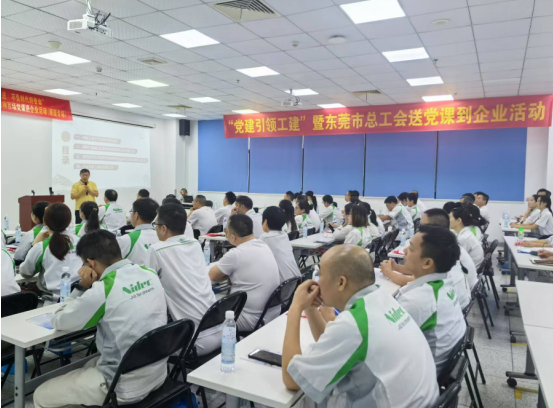 10月13日,由东莞市总工会主办,我校马克思主义学院、继续教育学院联合承办的“‘党建引领工程’暨东莞市总工会送党课到企业活动”走进塘厦镇尼得科精密马达东莞有限公司,企业党员、管理干部共65人参加活动。