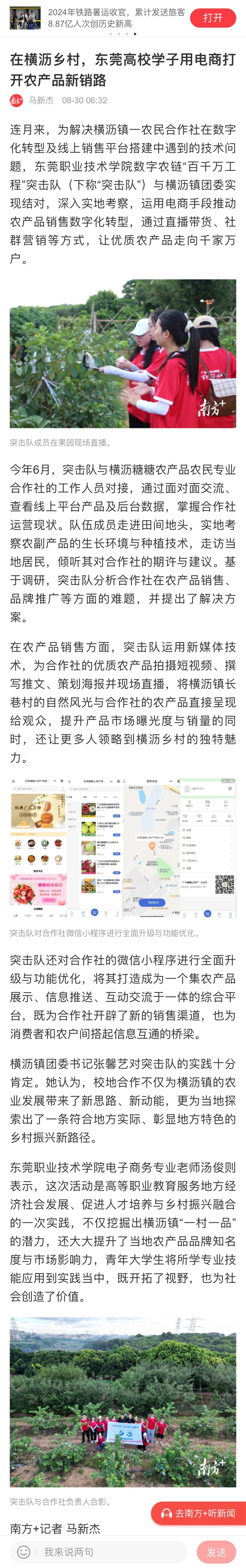 【南方+】在横沥乡村,东莞高校学子用电商打开农产品销路