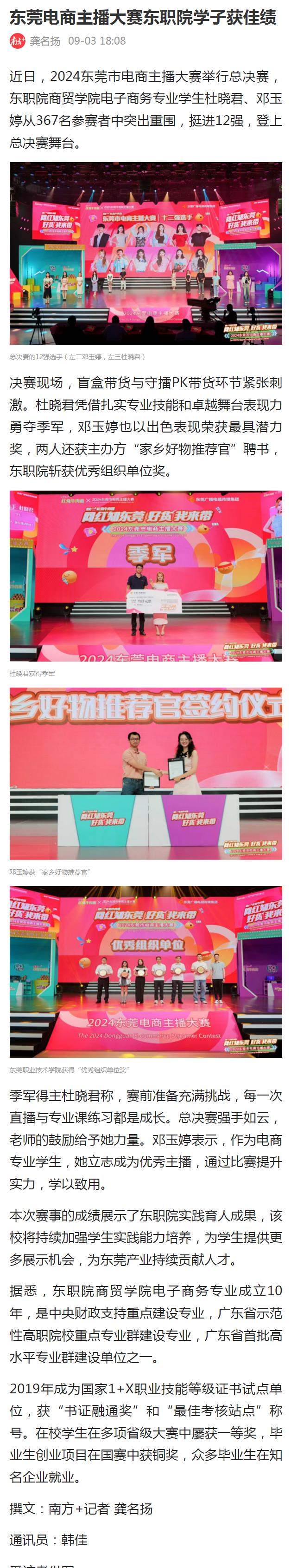 【南方+】东莞电商主播大赛东职院学子获佳绩